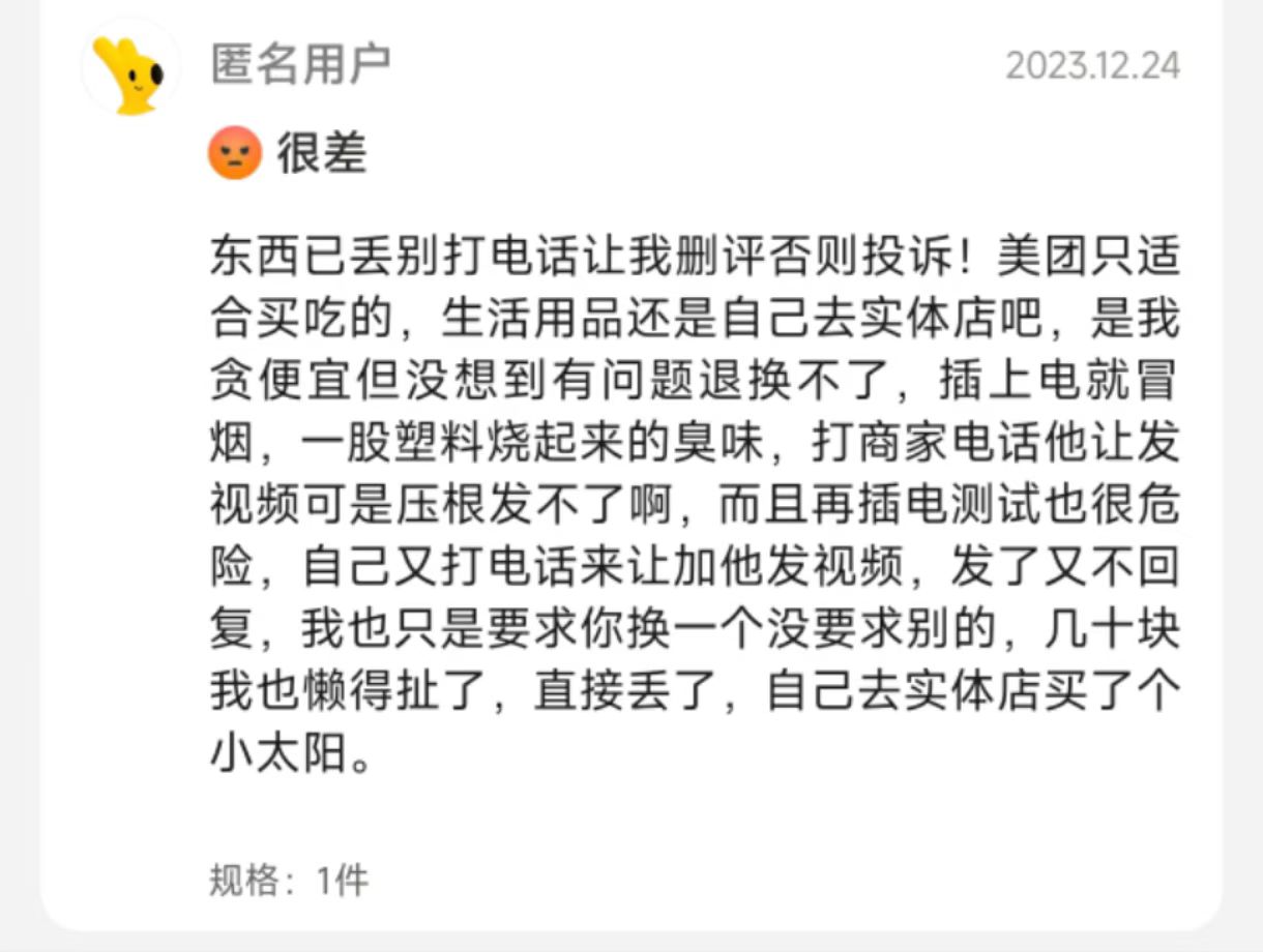 这条评论太真实了,我两次在M团买到三无产品,看来用的东西还是要去正规的电商平台才行。M团的商家胆子很大的,标榜正品都敢发假的给你。
